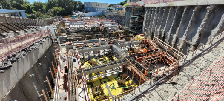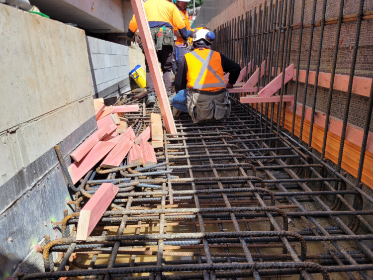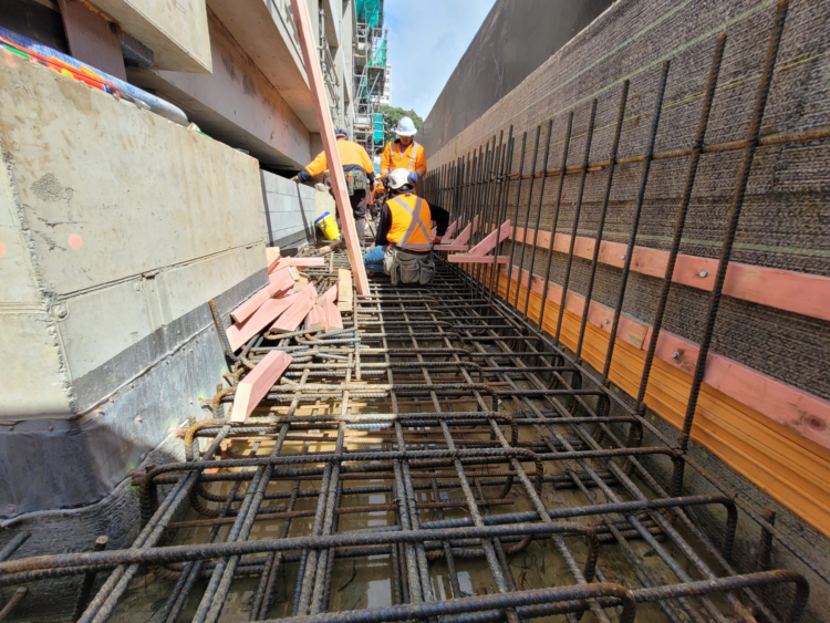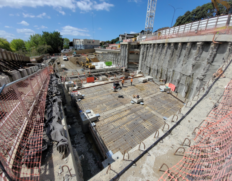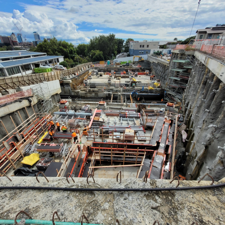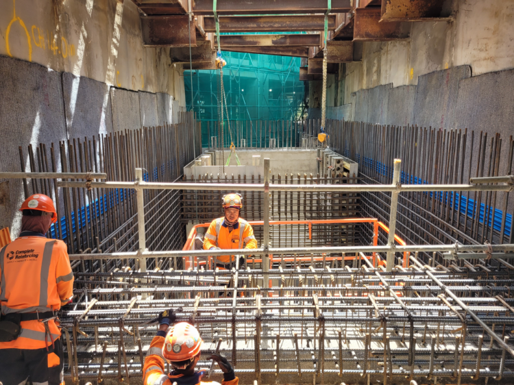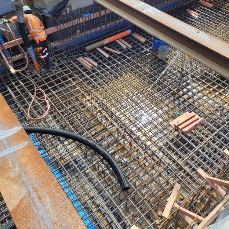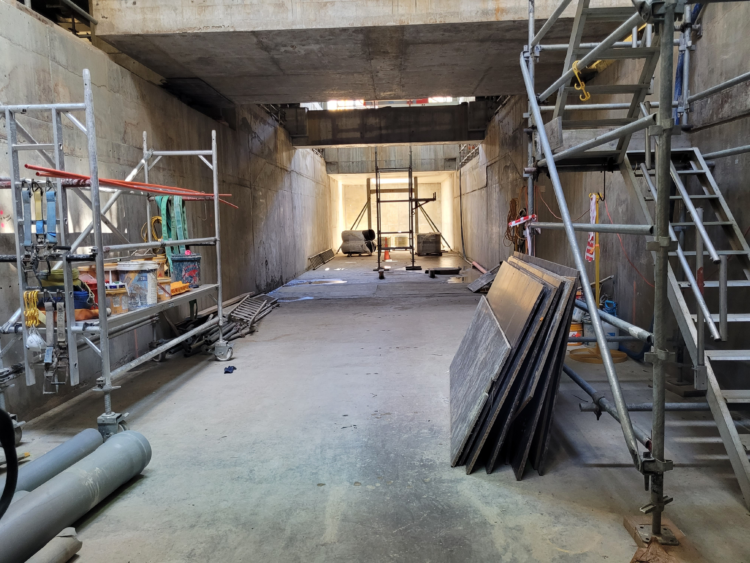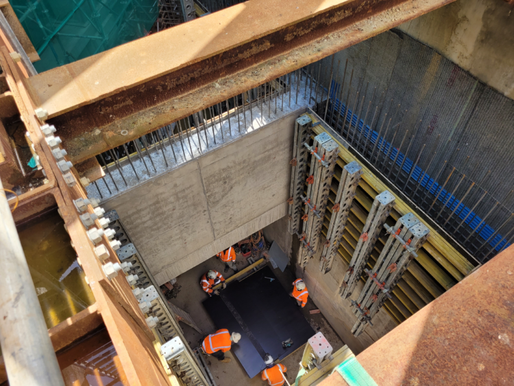 A major challenge was the unprecedented rain events of summer 2023, which occurred during the critical below-ground construction stage. The tunnel floor and walls became fully submerged during the deluge, requiring more than 750,000 litres of water to be pumped out before works could resume.